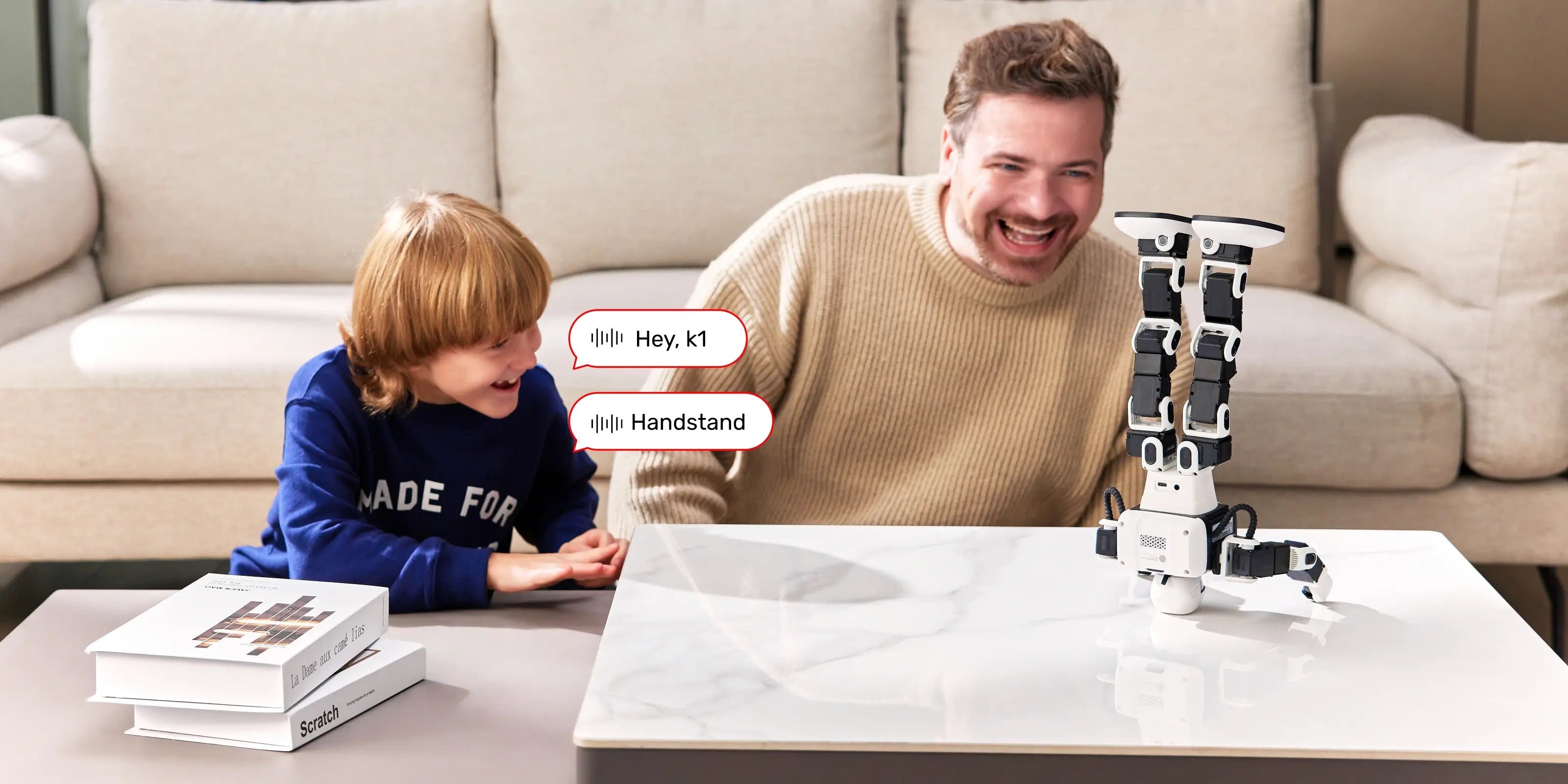 Entdecke die Superkräfte der Sprachsteuerung. Die K1-Serie ist sprachgesteuert und verfügt über mehr als 80 vorinstallierte Sprachbefehle, die ein intensives Erlebnis abseits eines Bildschirms bieten.