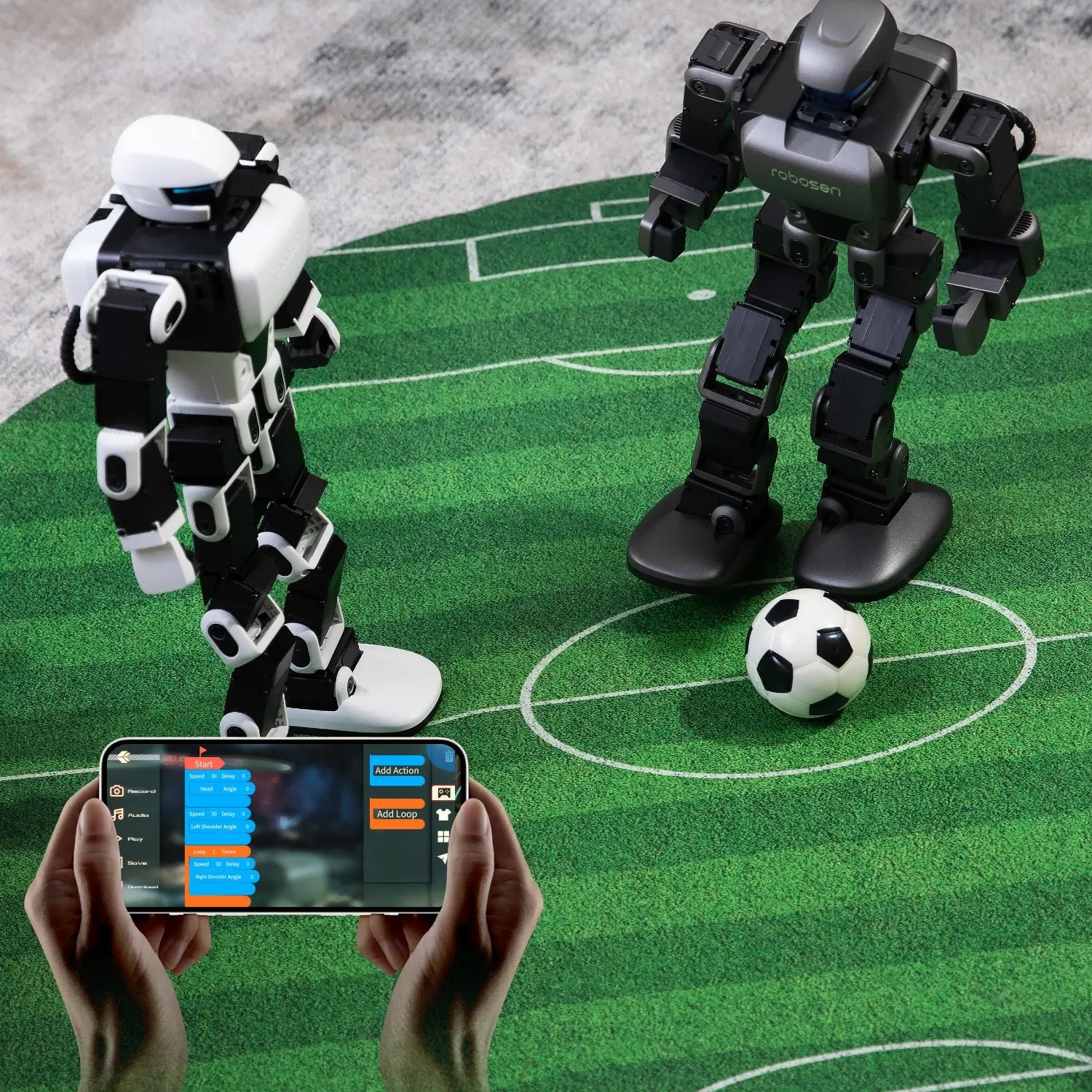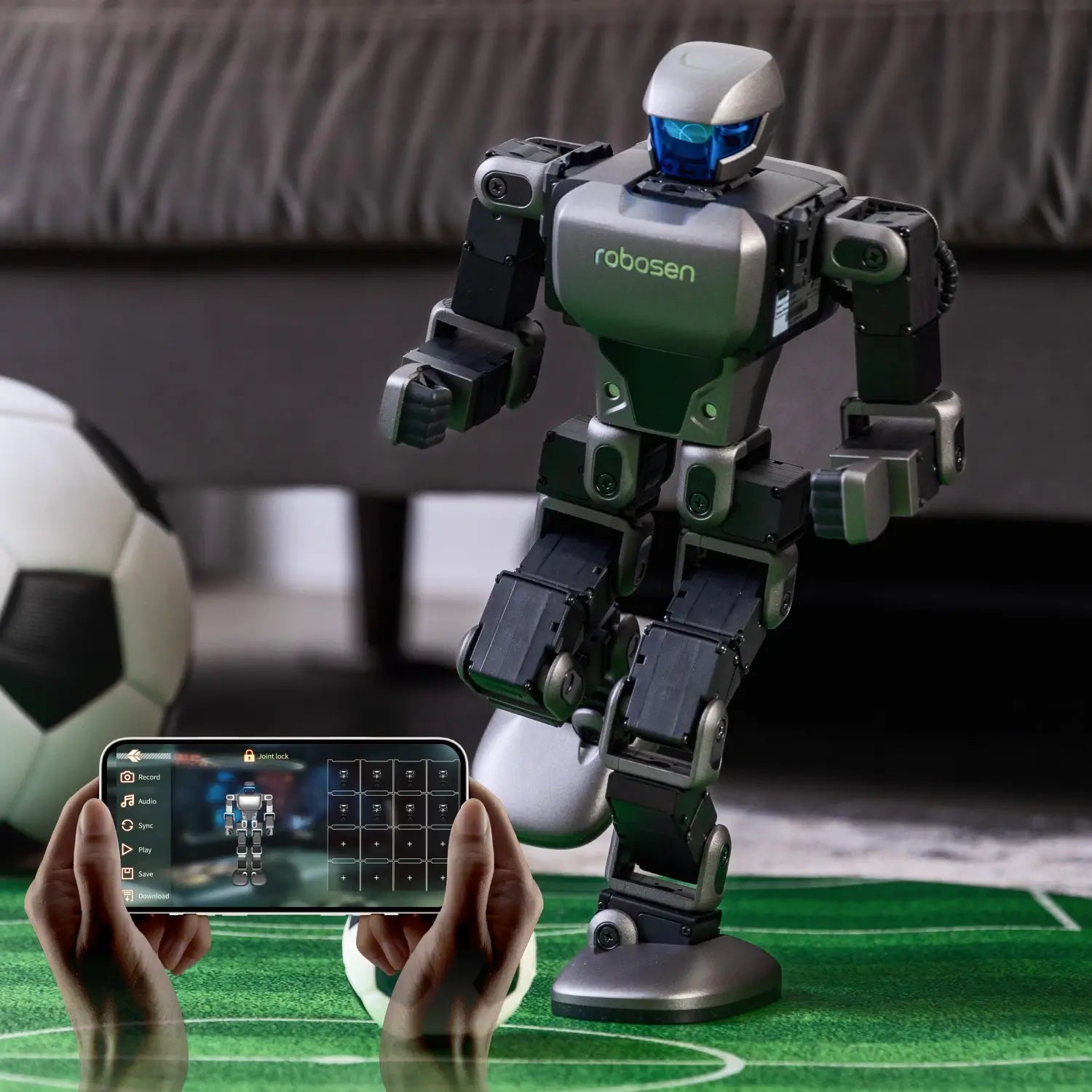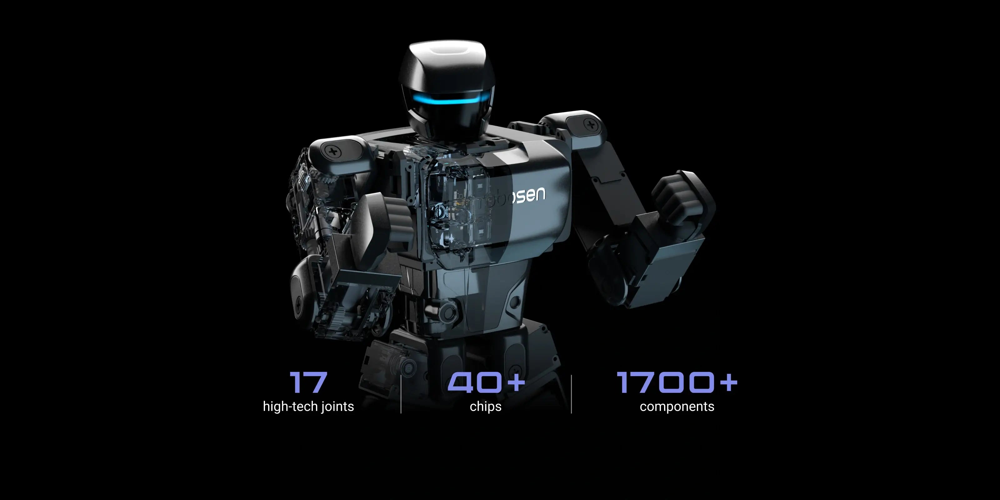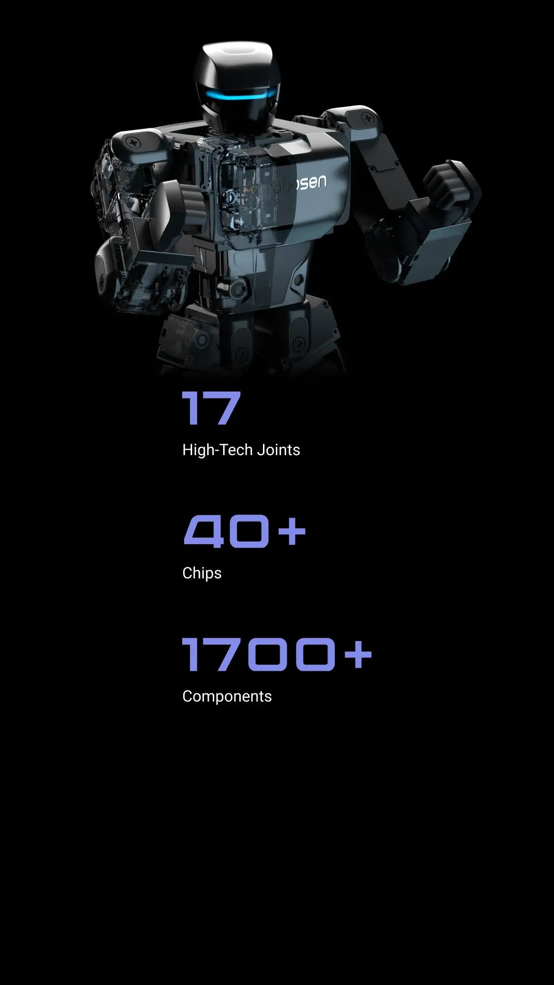 Aluminum alloy frame structures,17 servo motors (Head ×1/Hands 3×2/Legs 5×2)