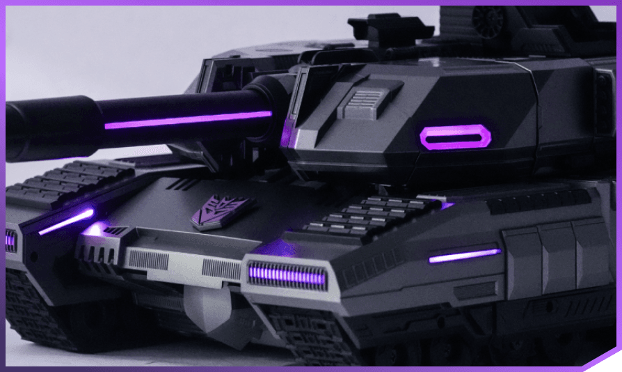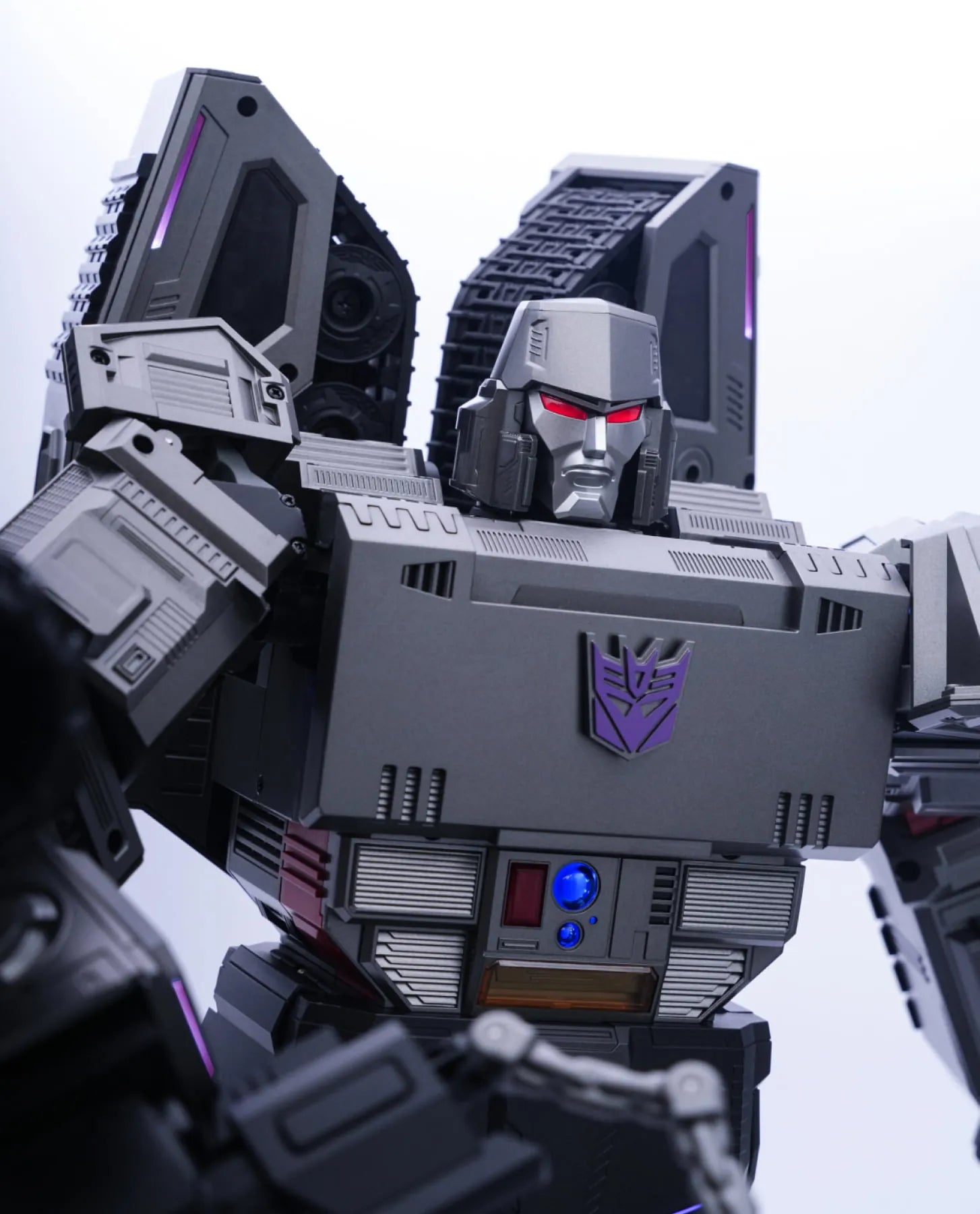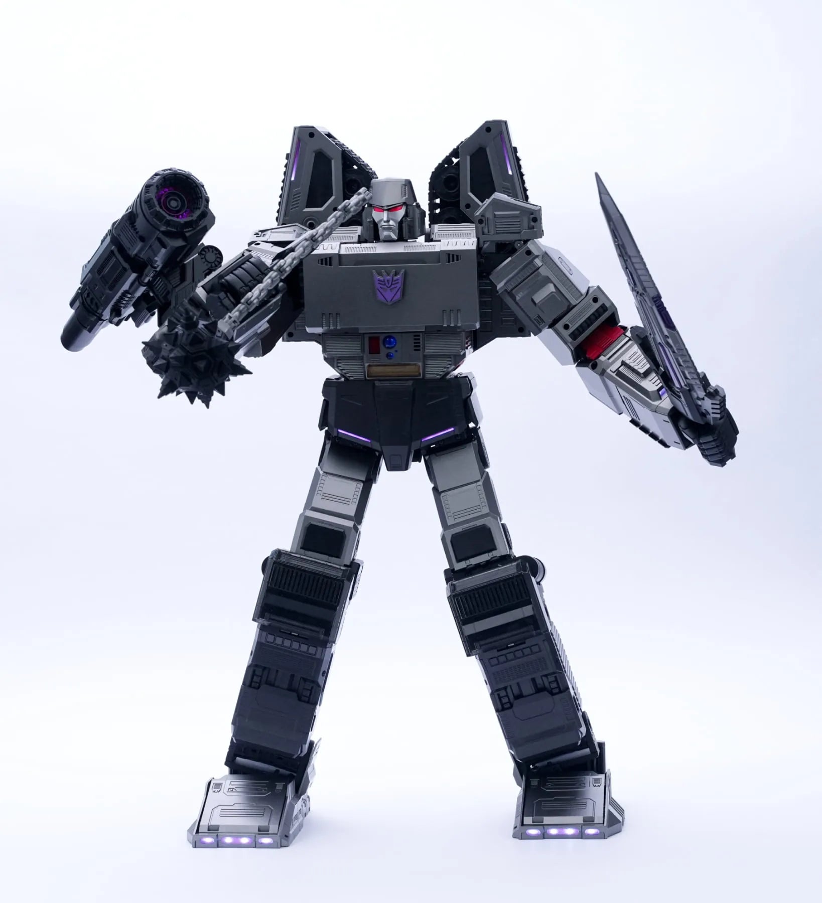 112 LED-Leuchten mit roten und violetten Akzenten erwecken Megatron zum Leben.