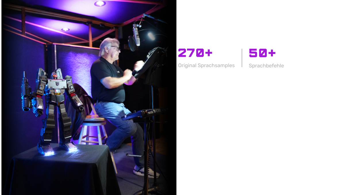 Über 270 Sprachzeilen, eingesprochen von Frank Welker, der Originalstimme von G1-Megatron.